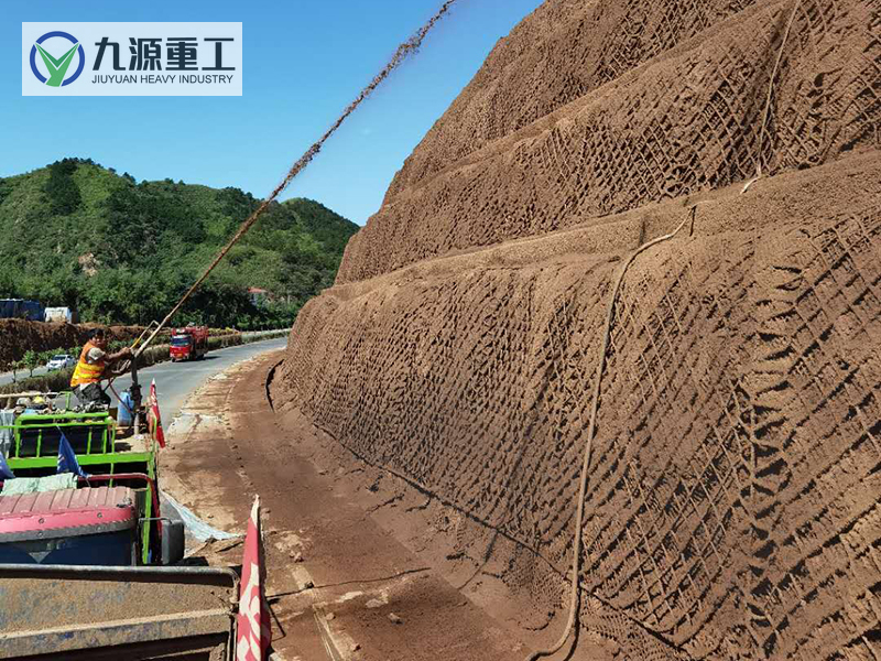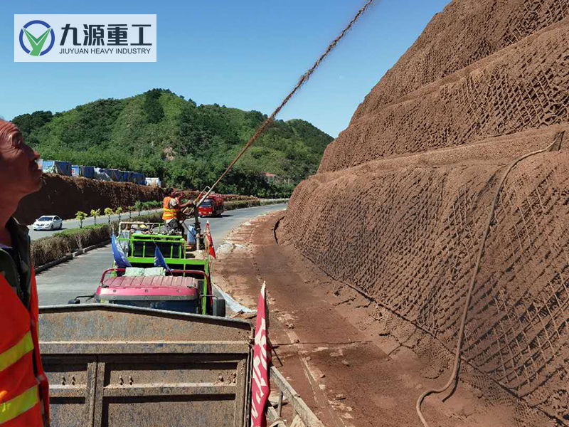 噴播機是應用于邊坡綠化的專業設備,通過本設備將土壤基質、綠化草籽、保水劑、黏合劑、肥料等,在噴播機攪拌罐中與水混合成膠狀的漿液,用泥漿泵將其噴播于坡面上。由于漿液中含有保水材料、黏合材料、各種養分,在保證了植物生長所需的水和其它營養物質來源的同時有效防止雨水沖刷對噴播材料的破壞,故而植物能夠健康、迅速地成長。