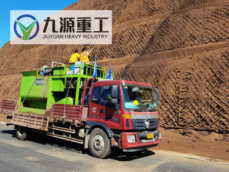 噴播機是應用于邊坡綠化的專業設備,通過本設備將土壤基質、綠化草籽、保水劑、黏合劑、肥料等,在噴播機攪拌罐中與水混合成膠狀的漿液,用泥漿泵將其噴播于坡面上。由于漿液中含有保水材料、黏合材料、各種養分,在保證了植物生長所需的水和其它營養物質來源的同時有效防止雨水沖刷對噴播材料的破壞,故而植物能夠健康、迅速地成長。